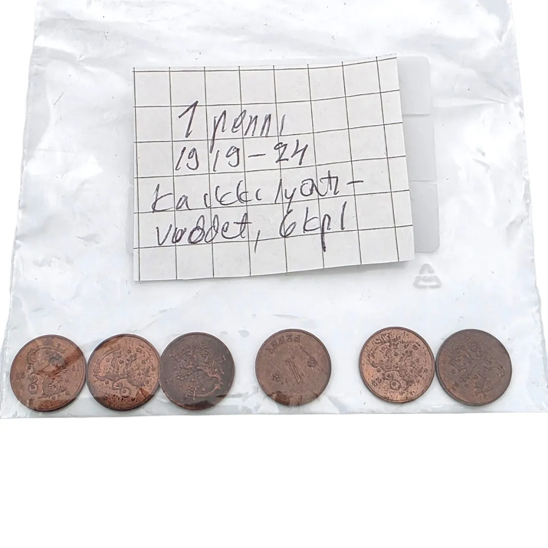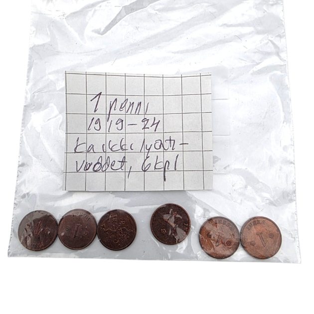 1 penni kaikki lyöntivuodet 1919-24, 6kpl