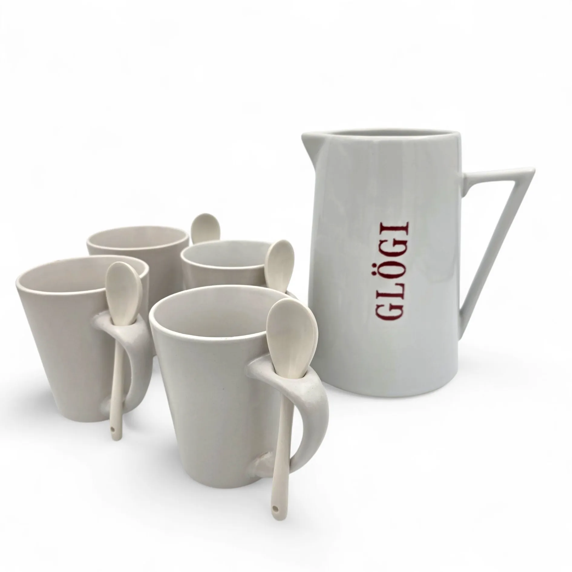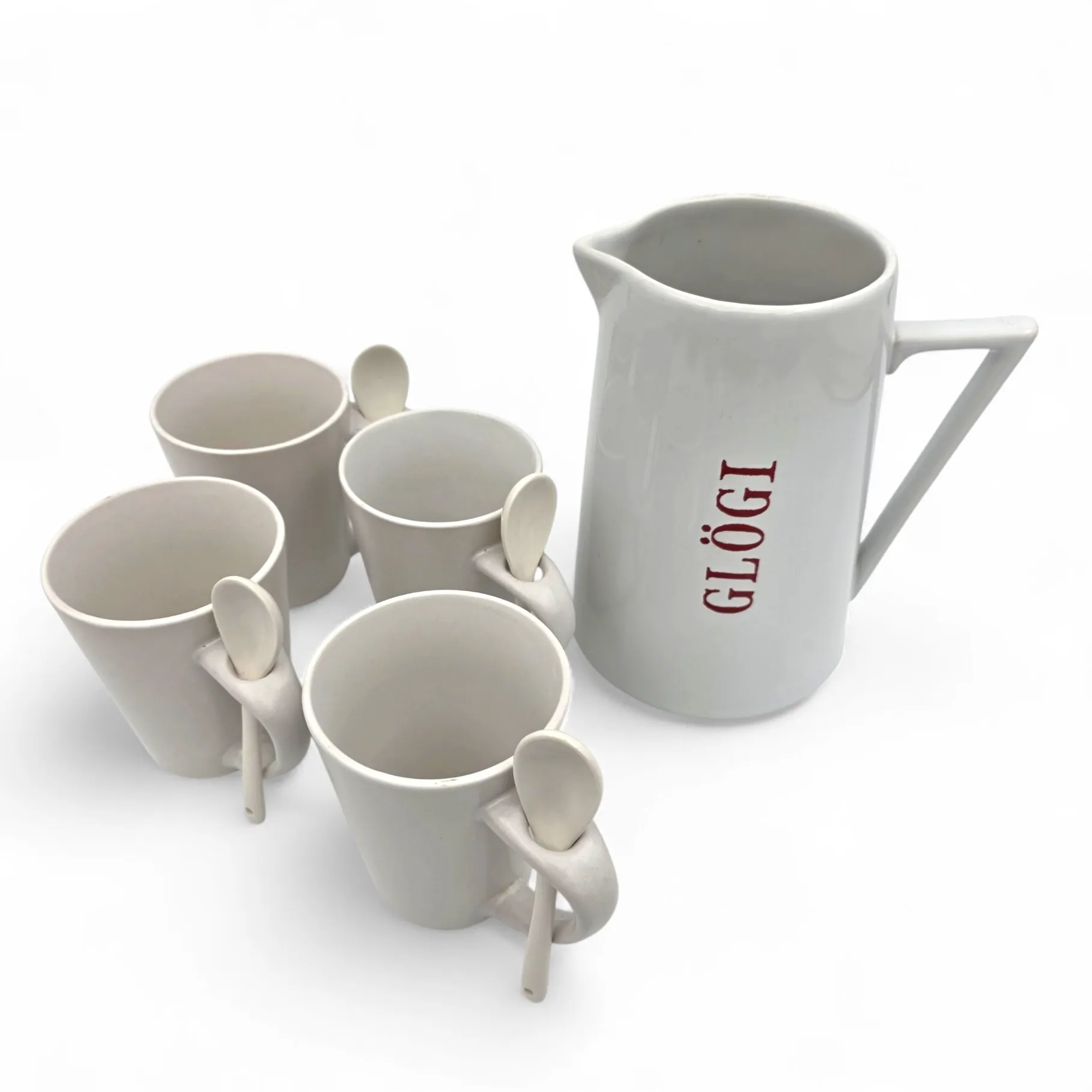 Glögisetti, kannu ja 4 mukia ja lusikkaa