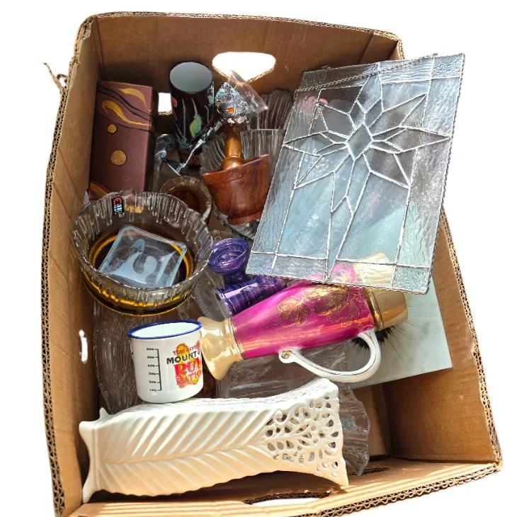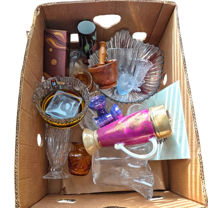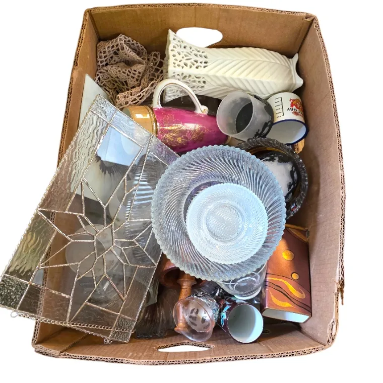 61. Kirppislaatikko, lasia ja keramiikkaa
