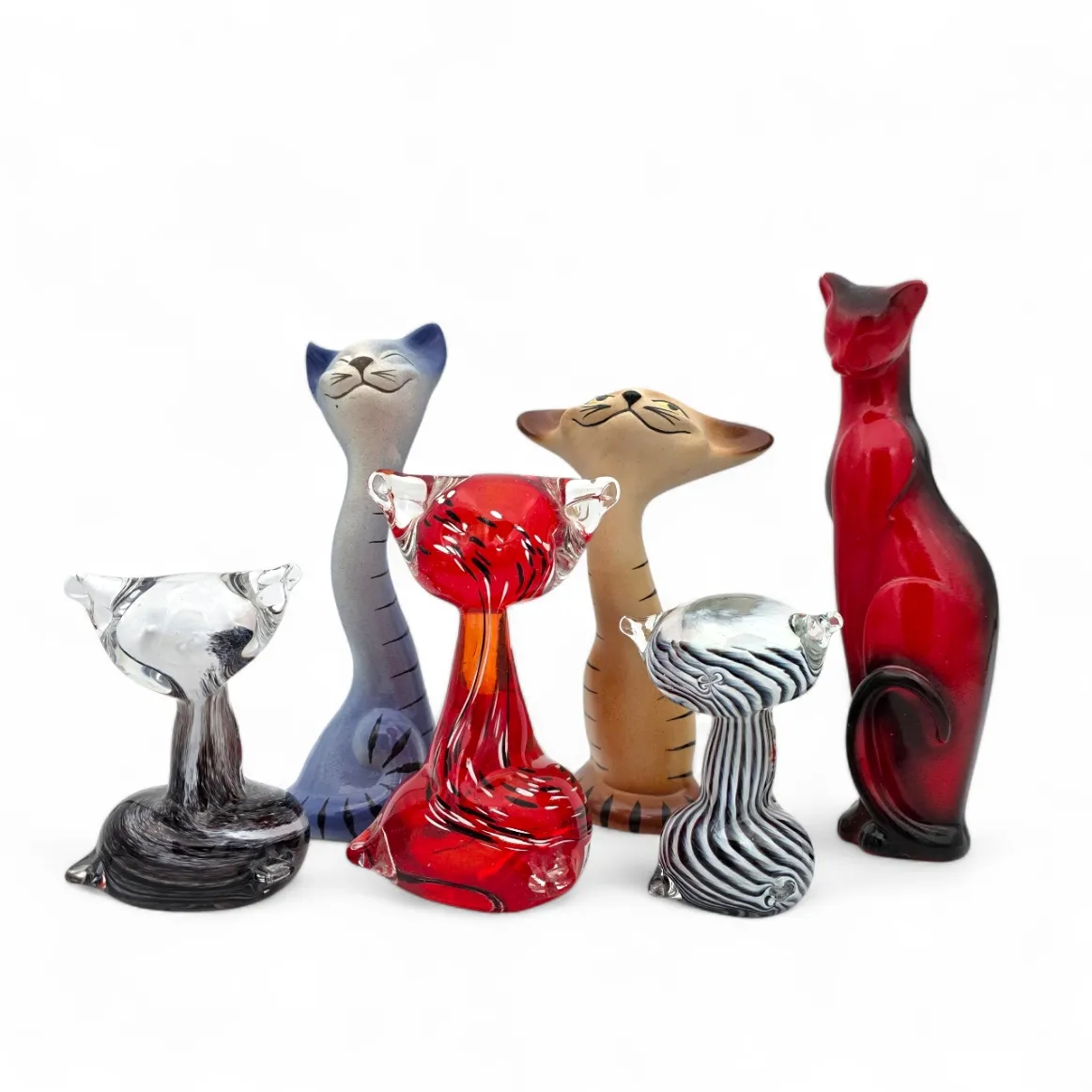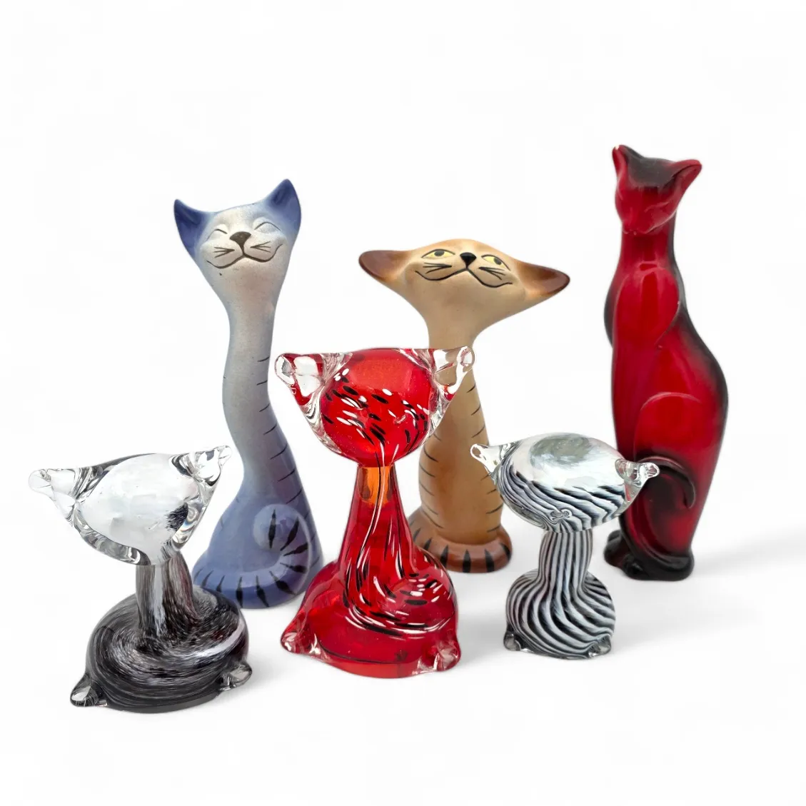 Kolme keraamista ja kolme lasista figuuria