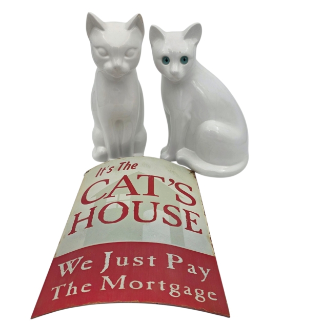 Kissat ja peltikyltti