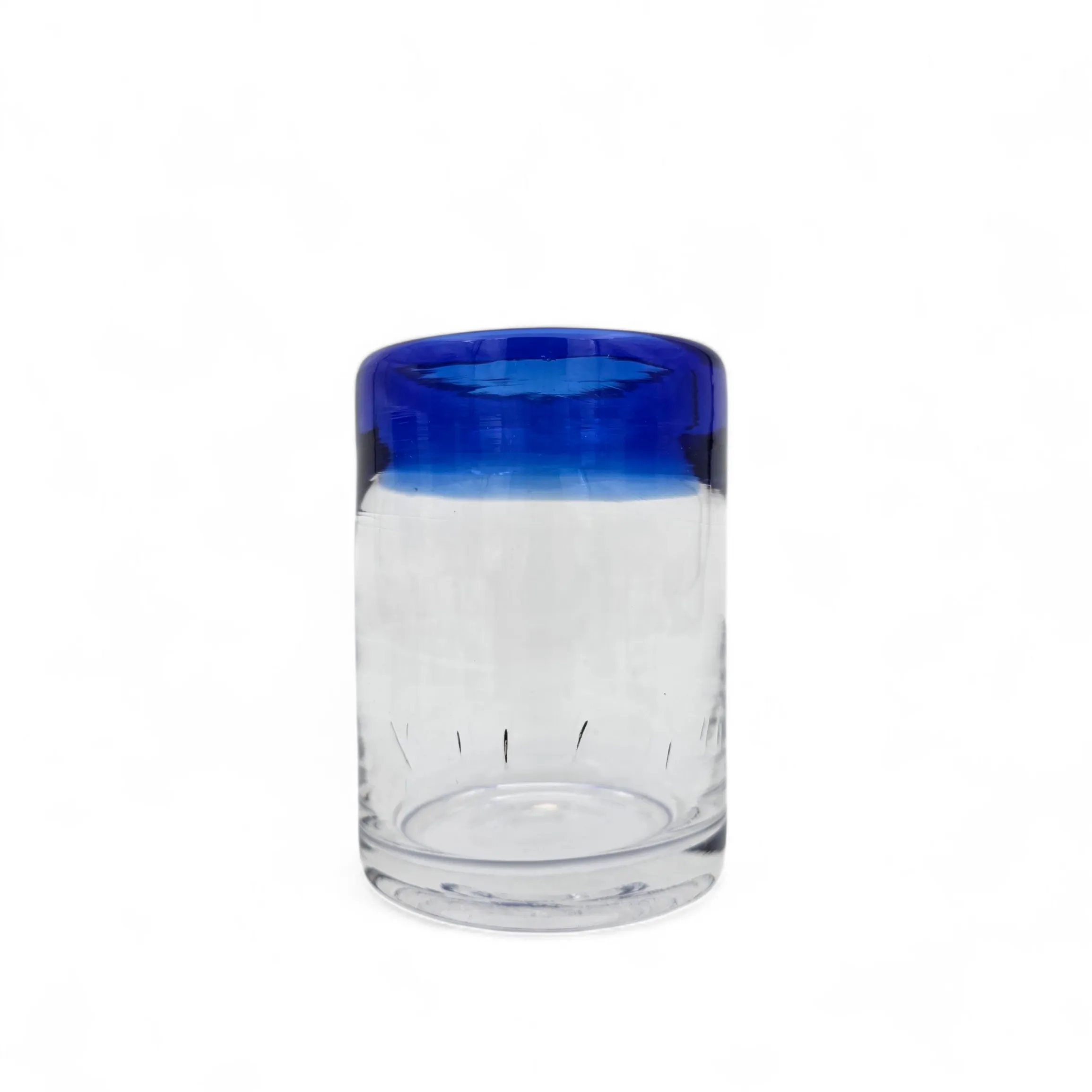Kirkas / koboltinsininen paksu lasi. Jokainen lasi on uniikki.