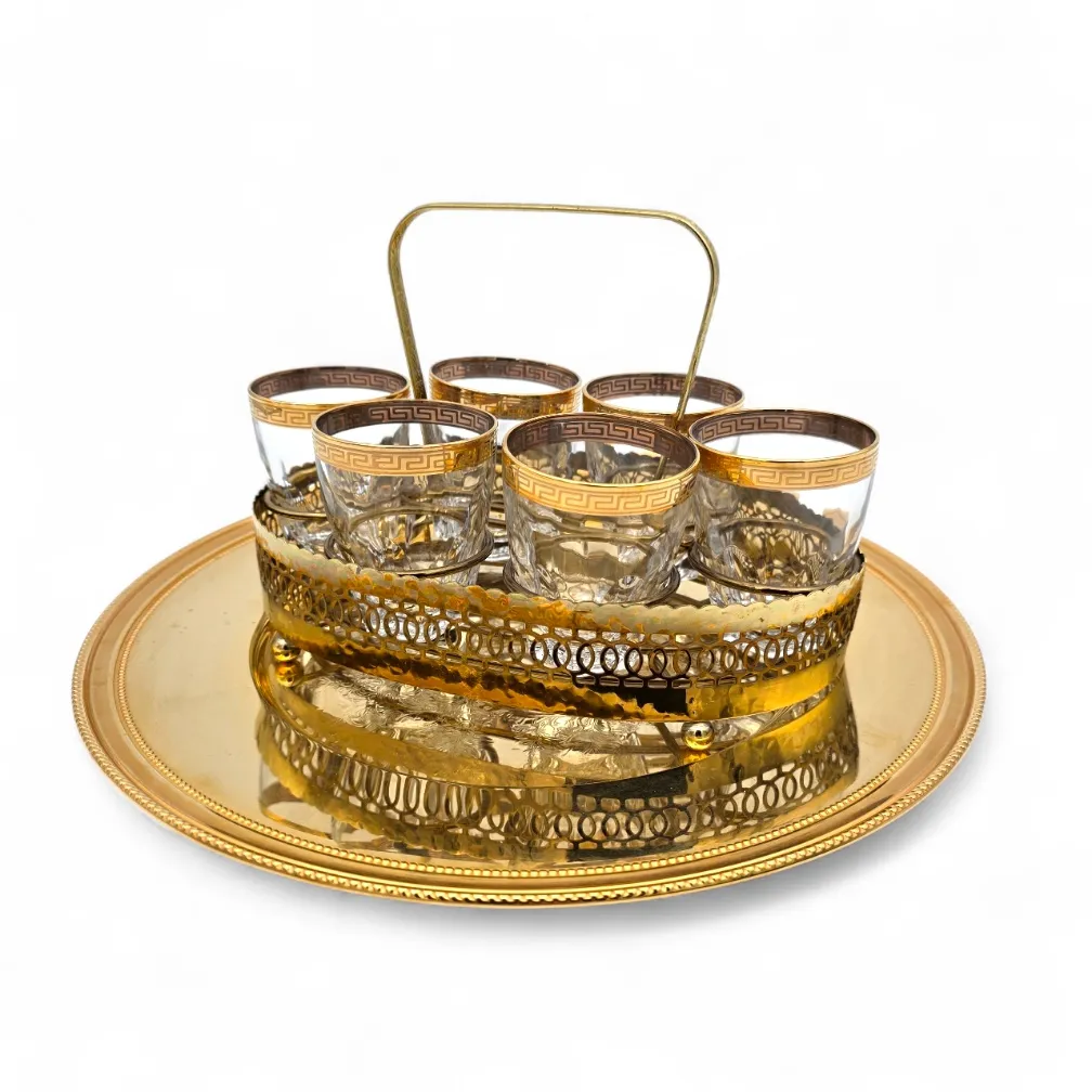 Tarjotin ja snapsilasit 6kpl telineessä