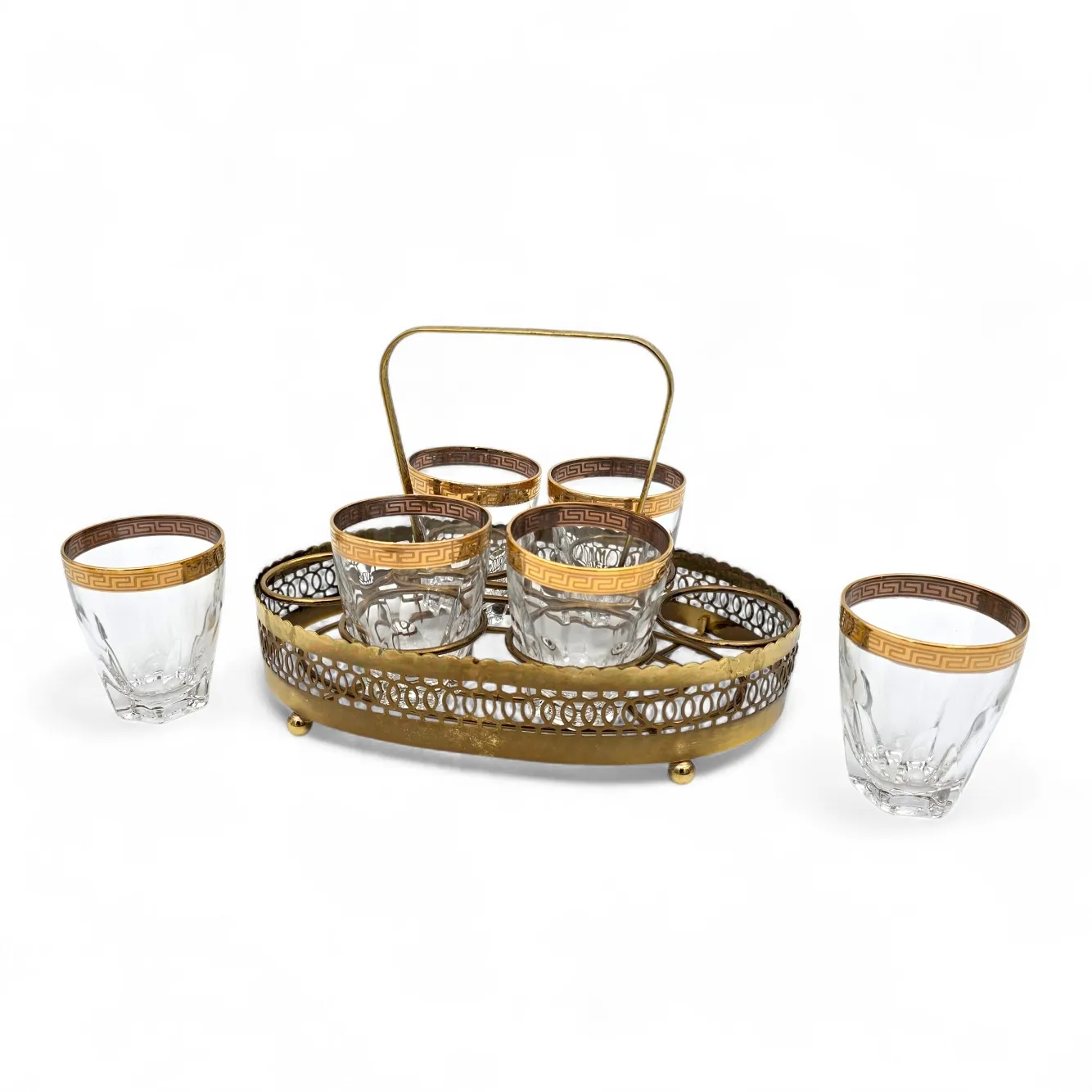 81. Tarjotin ja snapsilasit telineessä
